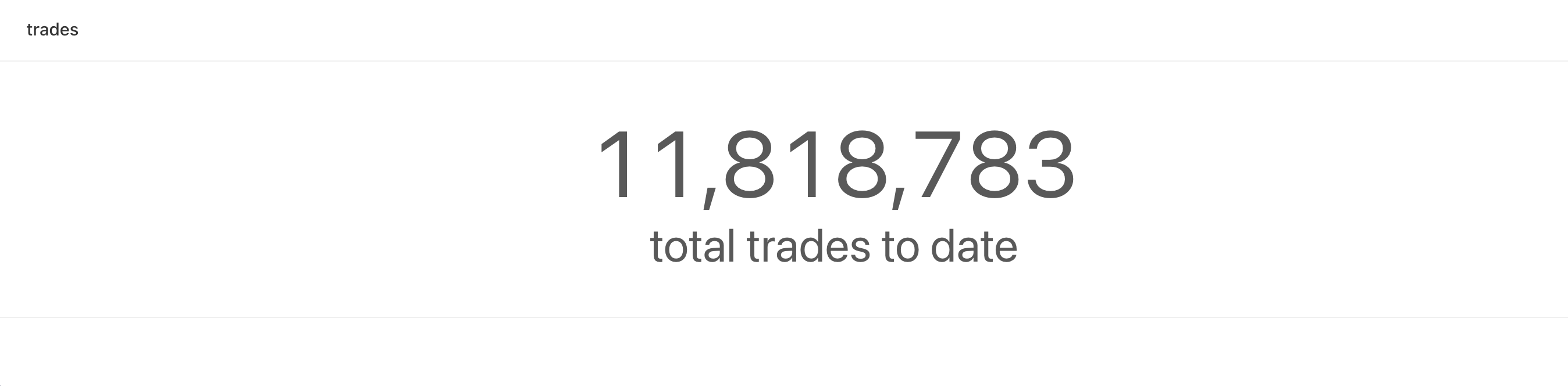 <figure><img src="https://1734215875-files.gitbook.io/~/files/v0/b/gitbook-x-prod.appspot.com/o/spaces%2FOgWs9W6eAoBVBKfuwJnu%2Fuploads%2F13sEf90et4s6lQ2H0e4m%2FScreenshot%202024-02-24%20at%205.40.10%20PM.png?alt=media&#x26;token=d9b7dcfe-c45e-4971-8aae-620f094cf38b" alt=""><figcaption><p>Total Number of Trades for Project X</p></figcaption></figure>